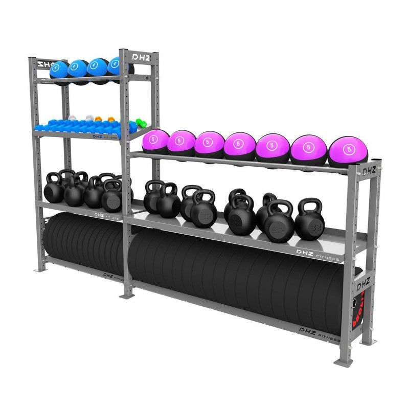 Модульные стеллажи – универсальное и простое решение по организации эффективного хранения оборудования в зале. Они отлично вписываются в интерьер любого кроссфит-зала.