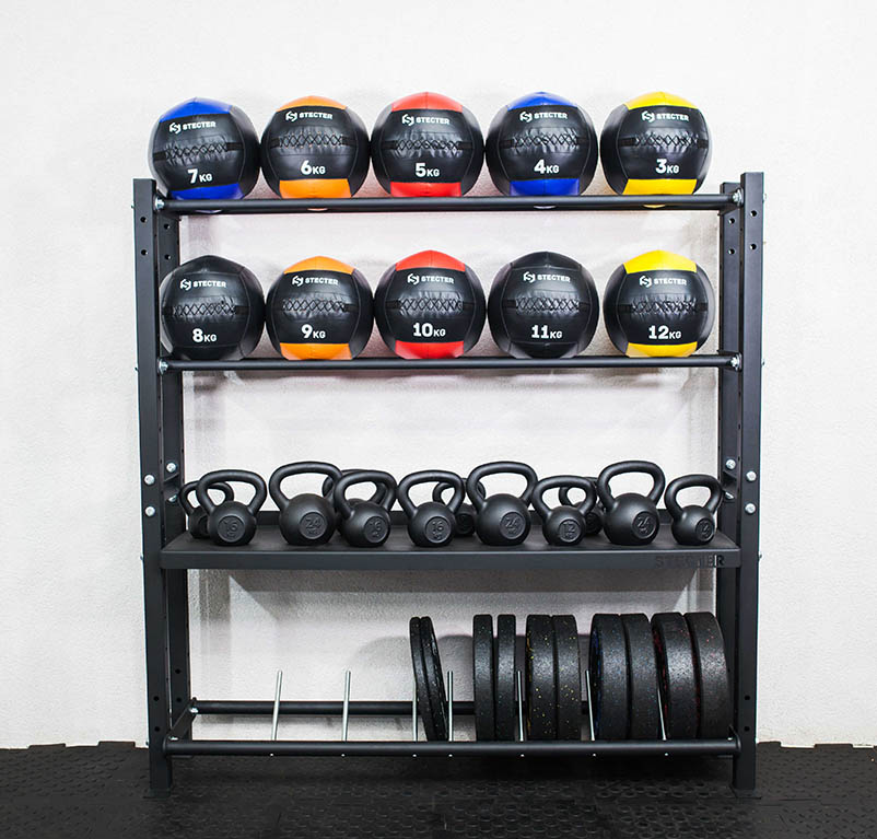 Проблемы хранения и систематизации инвентаря знакомы всем спортивным клубам – от маленьких районных «качалок» до крупных сетевых брендов. Решением вопроса для вашего спортзала может стать приобретение стеллажа для инвентаря – универсального аксессуара, позволяющего компактно разместить диски для штанги, гири и гантели. В опорных стойках имеется перфорация, которая позволяет менять высоту полок в зависимости от габаритов инвентаря.Преимущества спортивных стеллажей STECTER: