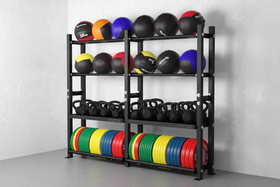 Проблемы хранения и систематизации инвентаря знакомы всем спортивным клубам – от маленьких районных «качалок» до крупных сетевых брендов. Решением вопроса для вашего спортзала может стать приобретение стеллажа для инвентаря – универсального аксессуара, позволяющего компактно разместить диски для штанги, гири и гантели. В опорных стойках имеется перфорация, которая позволяет менять высоту полок в зависимости от габаритов инвентаря.Преимущества спортивных стеллажей STECTER: