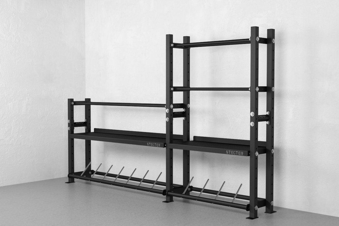 Проблемы хранения и систематизации инвентаря знакомы всем спортивным клубам – от маленьких районных «качалок» до крупных сетевых брендов. Решением вопроса для вашего спортзала может стать приобретение стеллажа для инвентаря – универсального аксессуара, позволяющего компактно разместить диски для штанги, гири и гантели. В опорных стойках имеется перфорация, которая позволяет менять высоту полок в зависимости от габаритов инвентаря.Преимущества спортивных стеллажей STECTER: