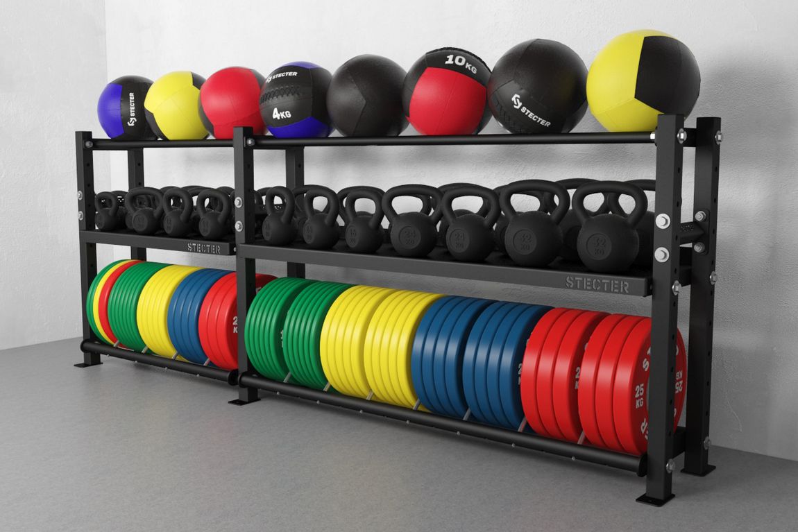 Проблемы хранения и систематизации инвентаря знакомы всем спортивным клубам – от маленьких районных «качалок» до крупных сетевых брендов. Решением вопроса для вашего спортзала может стать приобретение стеллажа для инвентаря – универсального аксессуара, позволяющего компактно разместить диски для штанги, гири и гантели. В опорных стойках имеется перфорация, которая позволяет менять высоту полок в зависимости от габаритов инвентаря.Преимущества спортивных стеллажей STECTER: