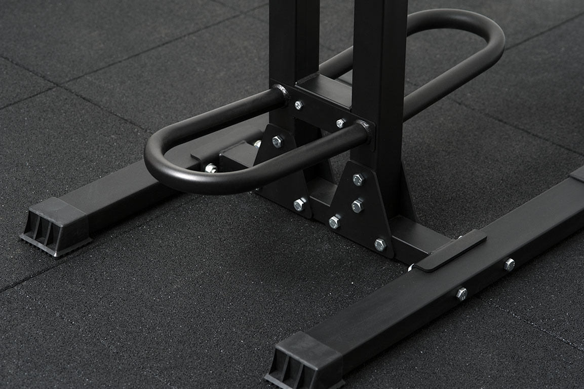 - Устойчивая разборная конструкция. В основании стойки для wall ball установлены 4 резиновых опоры - они повышают устойчивость на любом полу. При необходимости конструкция стойки позволяет ее полностью разобрать, чтобы она не занимала много места при хранении (перевозке).