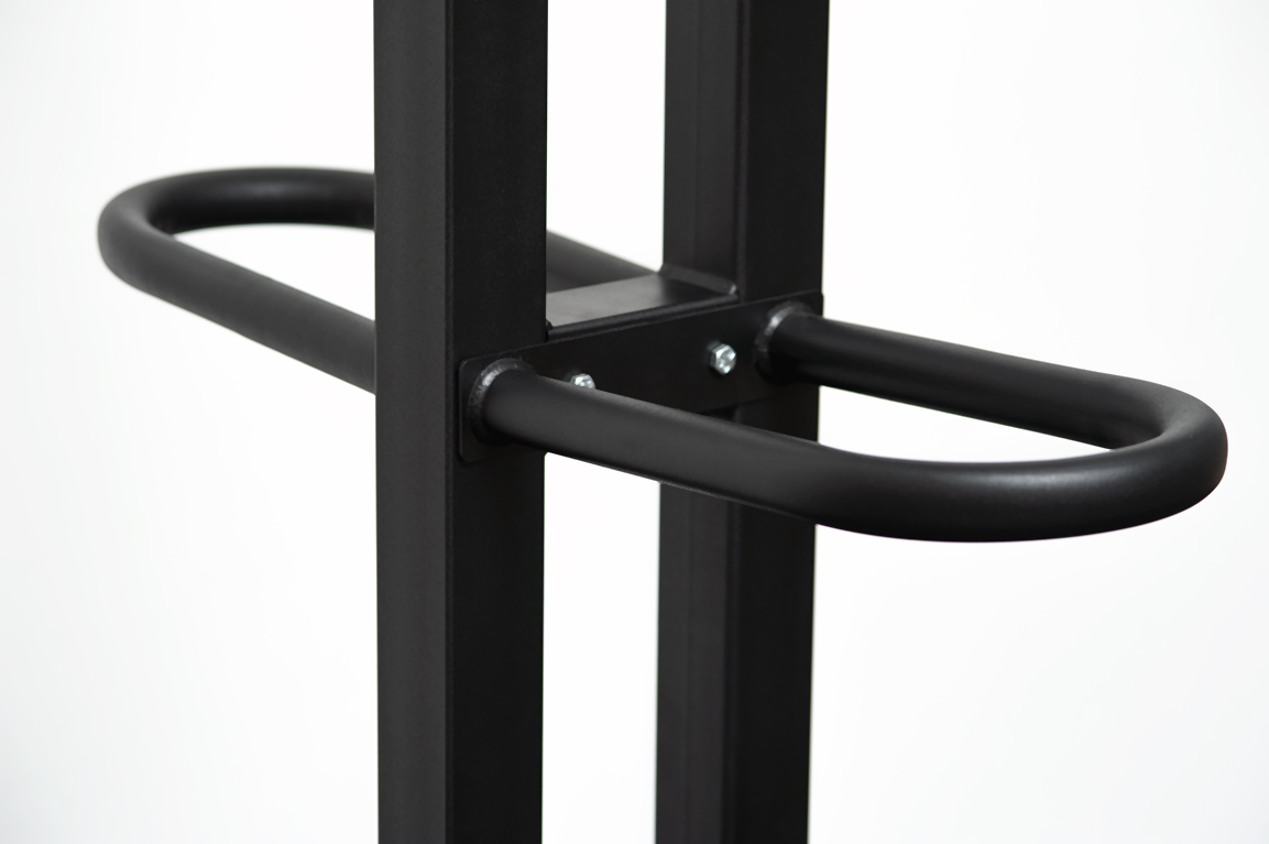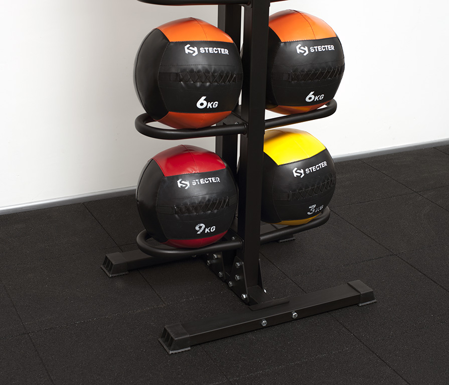 - Качественные материалы. Все детали напольной стойки для хранения медицинболов от компании STECTER рассчитаны на большие нагрузки и имеют солидный запас прочности. Для их изготовления используются толстостенные трубы с толщиной стенки не менее 3 мм и листовая сталь с толщиной не менее 4 мм. Это гарантия долгосрочной службы.