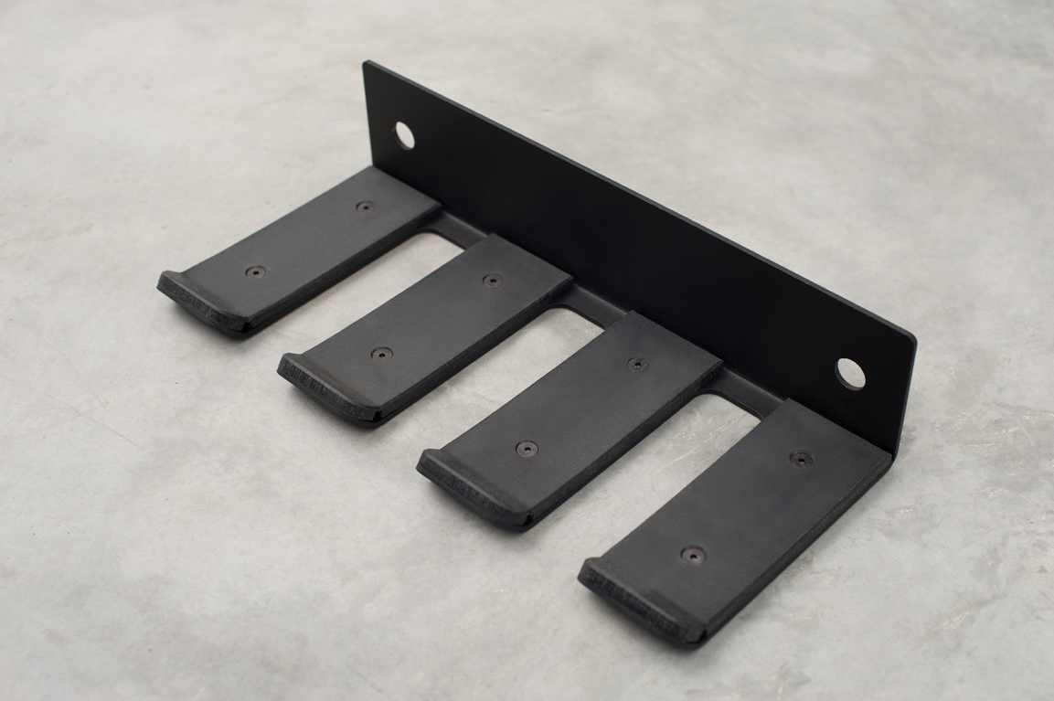 - Особенно рекомендуем данный кронштейн владельцам складных пристенных рам, т.к. в сложенном состоянии они могут хранить грифы вдоль стены с максимальной экономией свободного места.