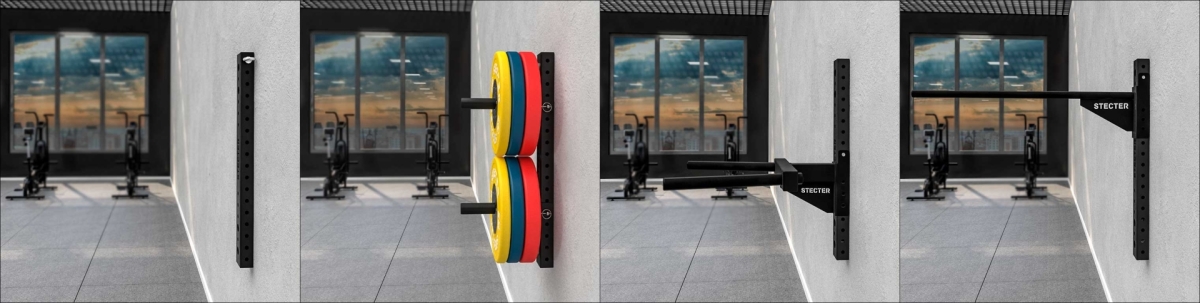 - Вы так же можете установить несколько кронштейнов в единую линию друг за другом, чтобы клиенты клуба могли идеально подобрать для себя высоту установки аксессуаров (например, если расположить кронштейны друг над другом, то можно удобно регулировать высоту детского турника JUNIOR PULL-UP BAR).