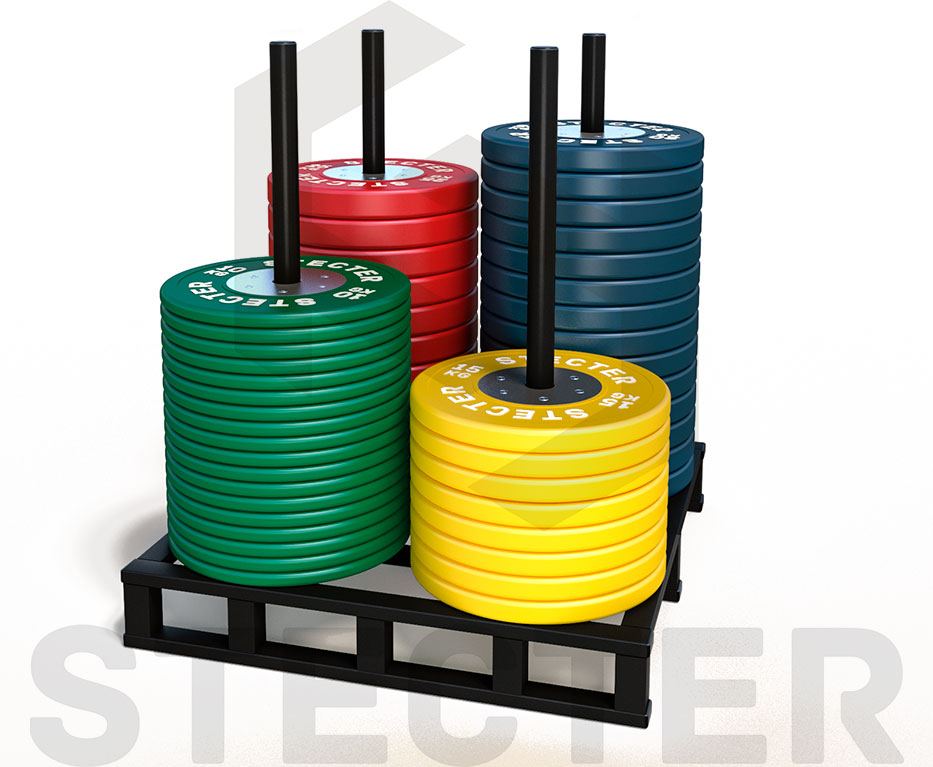 - Универсальный поддон для хранения и транспортировки дисков штанги будет полезен при организации спортивных соревнований.