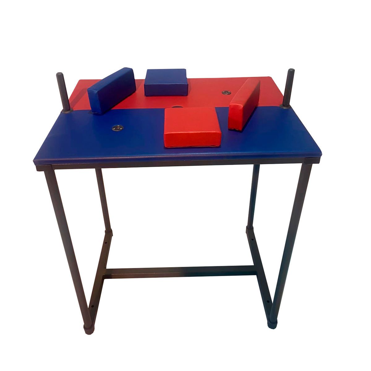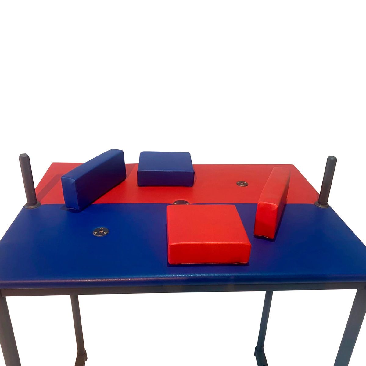 Подлокотник изготовлен таким образом, чтобы его края не имели закругленности Состоит из фанеры 15 мм и мягкой специальной подложки из вторично-вспененного полиуретана с обивкой двух-цветным кожзаменителем. Научно доказано, что борьба на асимметрических подлокотниках на много безопаснее, чем на параллельных.