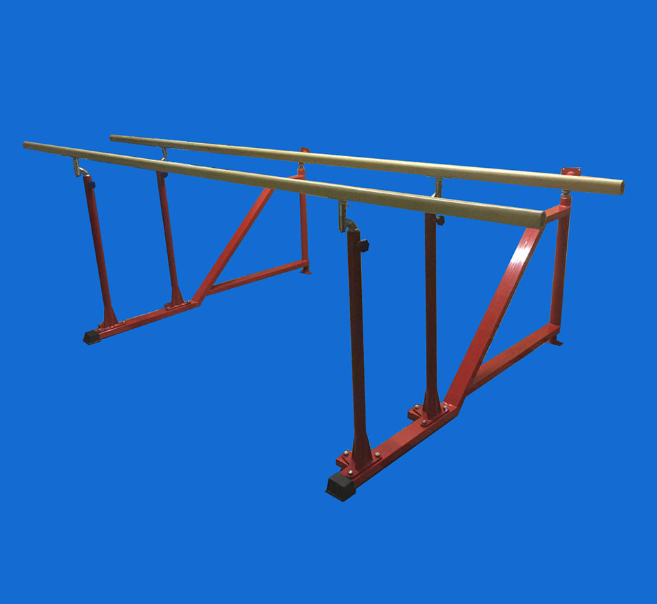 Брусья оснащены улучшенным механизмом зажима и автофиксации, что обеспечивает безопасность в процессе эксплуатации, а также простоту в регулировке высоты и расстояния между брусьями. Также имеют усовершенствованную конструкцию складного элемента, позволяющую без усилий, без колесиков, которые часто повреждают покрытие, складывать и раскладывать брусья.