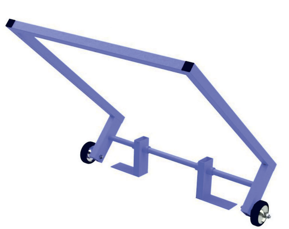 Тележка представляет собой сварную металлическую конструкции. Для передвижения тележка снабжена колесами. Брусья устанавливаются на захваты, поднимаются поворотом тележки.