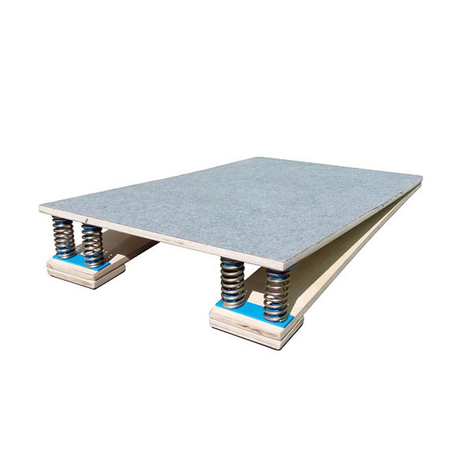 Мостик гимнастический подкидной предназначен для выполнения опорных прыжков в закрытых помещениях общеобразовательных школ и прочих спортивных залах. Мостик изготовлен из многослойной березовой фанеры толщиной 18 мм. Оснащен двумя пружинами из высококачественной стали. Платформа мостика покрыта ковролином, что препятствует скольжению ног во время прыжков.