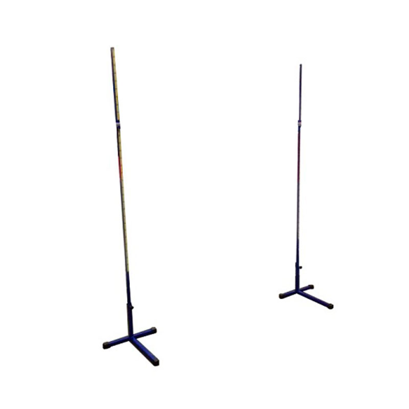 Комплект состоит из двух вертикальных металлических стоек с нанесенной шкалой измерения высоты планки. Стойки изготавливаются из стального профиля 20*20 мм, закрепляются в металлических ножках из стального профиля 25*25 мм. На ножках установлены пластиковые заглушки. Опорные площадки для планки поставляются в комплекте.