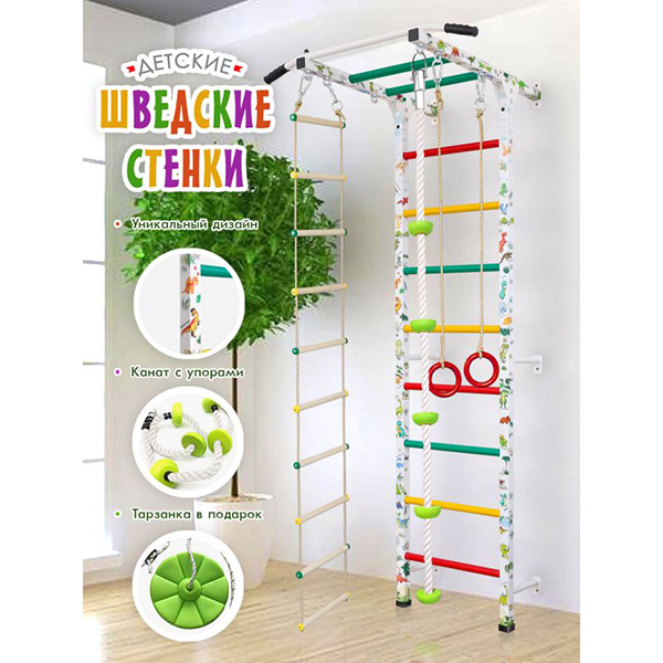 Для дома, С турником, Детские с турником, С кольцами, С канатом, С рукоходом, Стенки 3 в 1, Маленькие, Белые