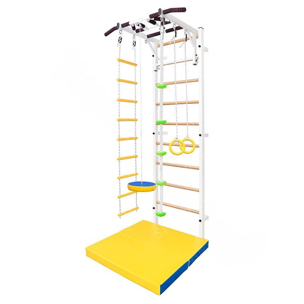 Для дома, С турником, С кольцами, С канатом, Стенки 3 в 1, Маленькие, Белые