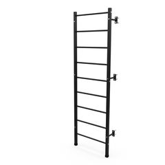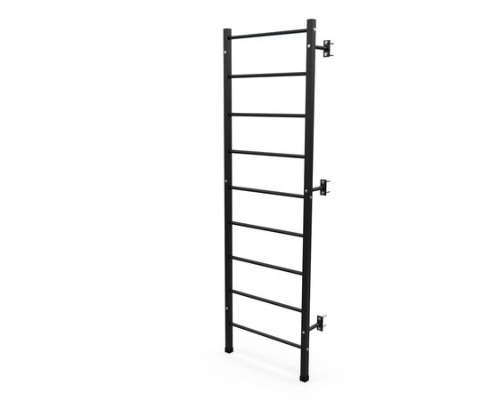 Сама стенка компактная: её высота составляет 231 см, а ширина всего 70 см. Расстояние от стены до стоек шведской стенки - 16 см. Расстояние между стойками диаметром 50 мм и толщиной 1,2 мм составляет 60,5 см, что является и шириной девяти перекладин диаметром 25 мм.