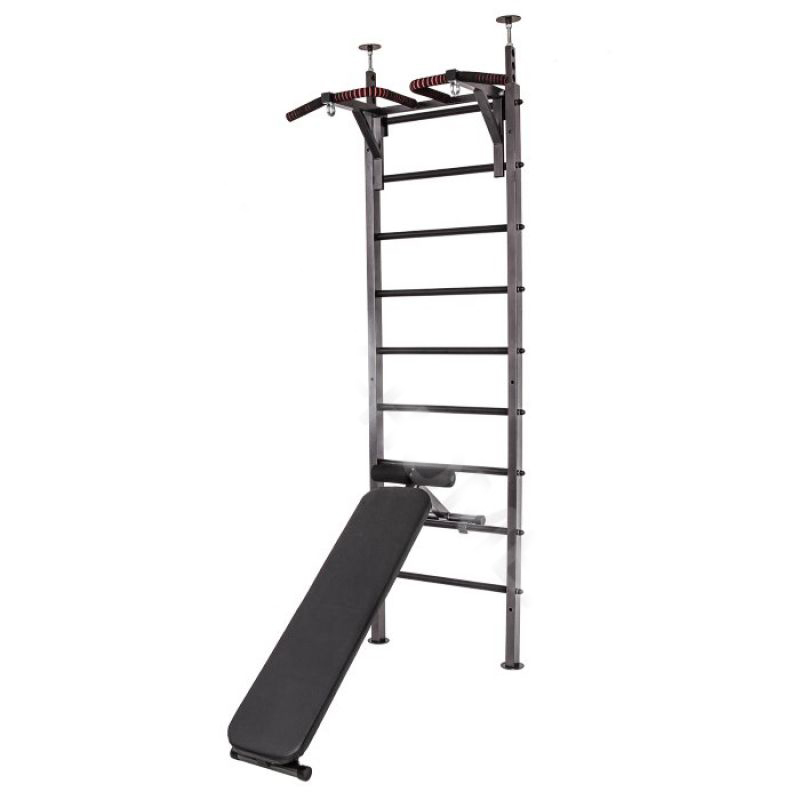 Для дома, С турником, Со скамьей, Стенки 3 в 1, Маленькие, Усиленные, Чёрные
