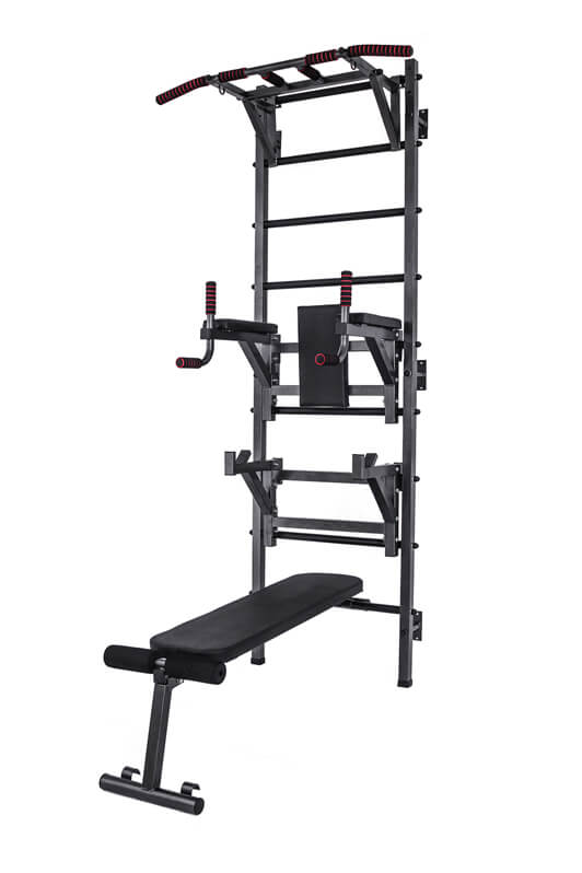 По краям турника расположены металлические кольца для подвешивания боксёрского мешка, колец, каната и прочих спортивных снарядов. Турник и брусья оснащены мягкими неопреновыми ручками. Турник, брусья и скамья легко перевешиваются на перекладины шведской стенки, что позволяет менять их высоту.
