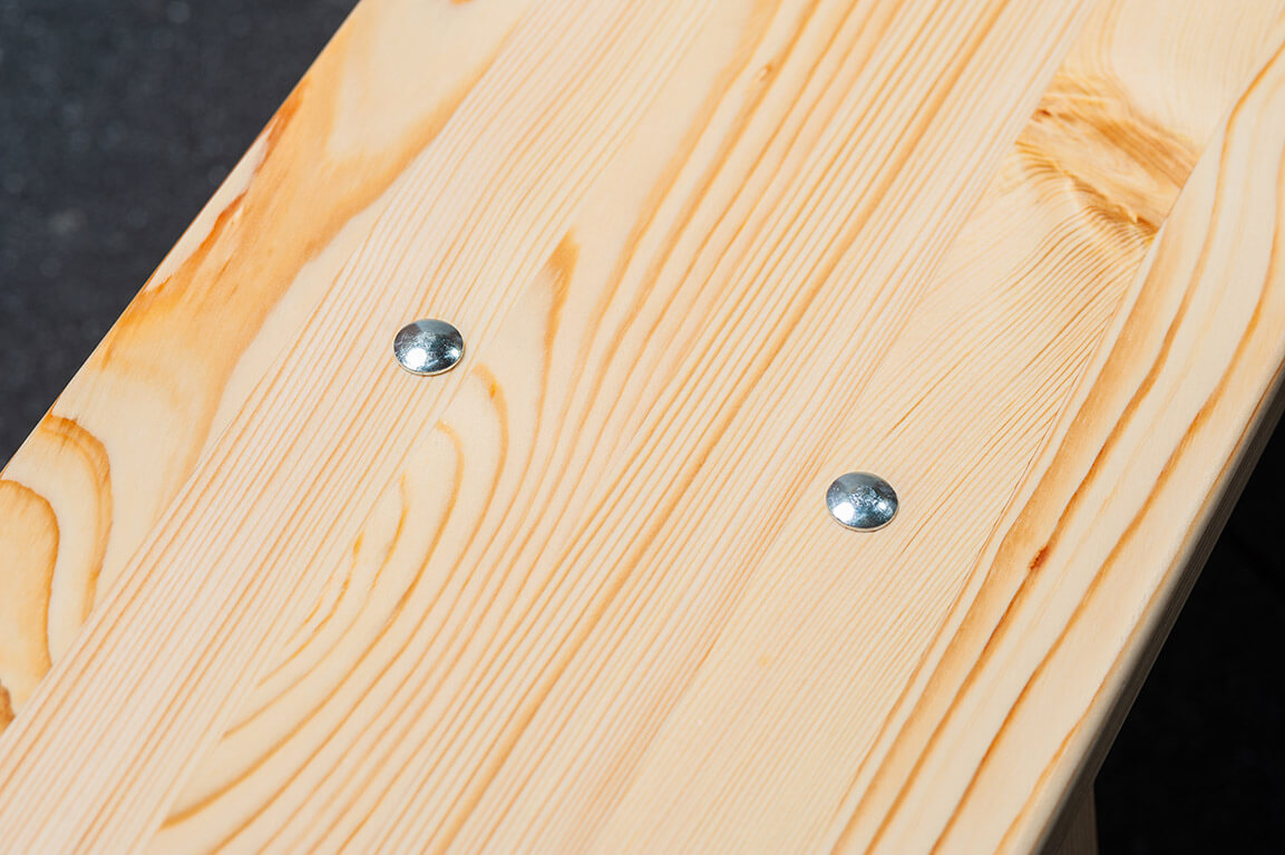 - Сидушка и царга изготовлены из натуральной древесины (сосна), отшлифованы и покрыты прозрачным лаком.