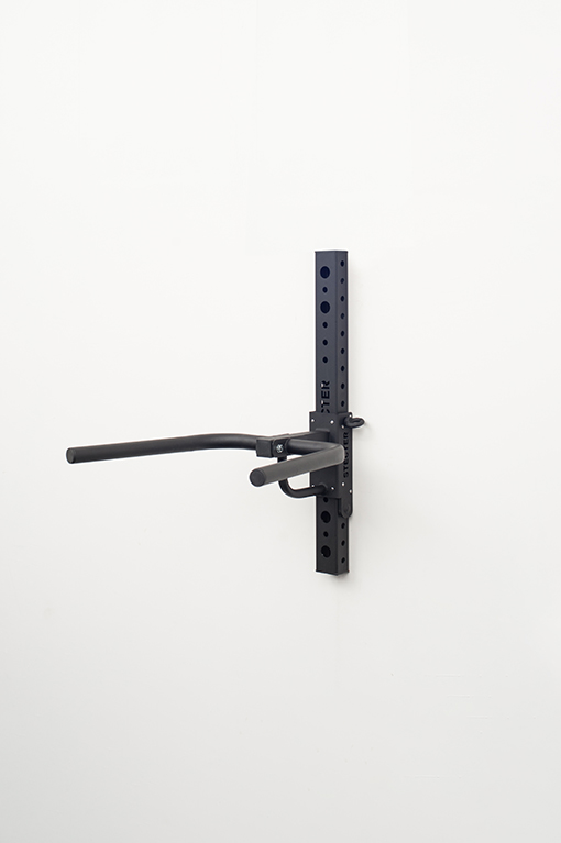 Представленный набор состоит из двух элементов – настенный кронштейн с перфорацией и сами складные брусья. Оба элемента окрашены матовой антискользящей порошковой краской черного цвета.