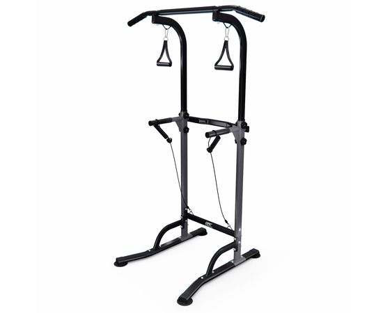 Турник-брусья DFC G007G серого цвета позволяет выполнять упражнения на разные группы мышц. Вес пользователя не должен превышать 120 килограмм.