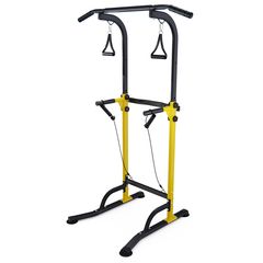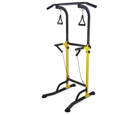 Турник-брусья DFC G007Y желтого цвета позволяет выполнять упражнения на разные группы мышц. Вес пользователя не должен превышать 110 килограмм.