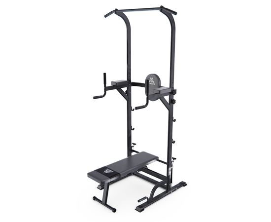 В комплекте идет прямая скамья. С помощью парных крючков на раме турника возможно установить скамью под разным углом для выполнения различных упражнений.