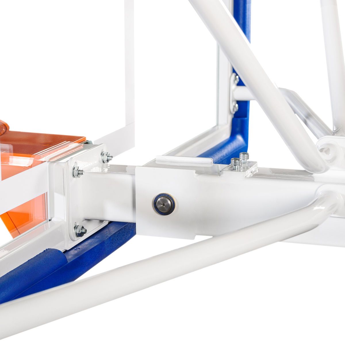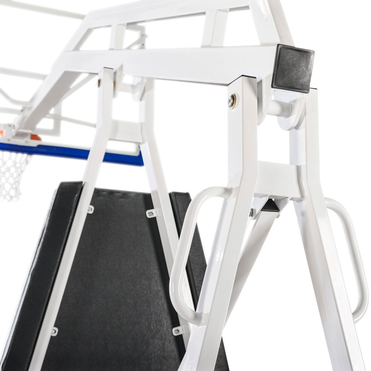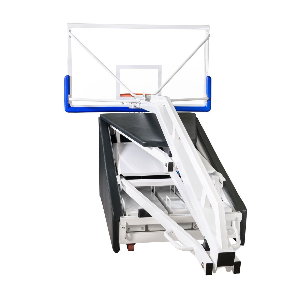 Стойка баскетбольная передвижная предназначена для игры в профессиональный баскетбол, мини баскетбол и тренировок. Стойка баскетбольная оснащена гидравлическим механизмом складывания/раскладывания. При раскладывании стойка автоматически устанавливается на рабочую высоту, не требуя дополнительных регулировок. Стойка баскетбольная снабжена наборным противовесом и комплектом для фиксации к полу при игре и установке. В сложенном положении стойка баскетбольная перевозится на колесах в любое удобное место, освобождая зал для других игр. Широкие обрезиненные колеса большого диаметра (4шт.) не будут повреждать ваше спортивное покрытие. Для до комплектации требуется щит размером - 1800х1050 мм. И баскетбольное кольцо. Специальная конструкция крепления исключает передачу нагрузки от кольца на поверхность щита и защищает его от разрушения при "зависании" игрока на кольце. Передняя часть стойки и бока обшиты мягкими протекторами. Стойка баскетбольная мобильная складная дополнительно может быть укомплектована защитными протекторами на баскетбольный щит. Подготовку баскетбольной стойки к игре может осуществлять 1 человек, время установки в рабочее положение примерно 3-5 минут.