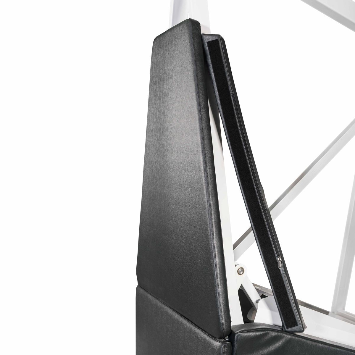 - Колеса с полиуретановым покрытием позволяют использовать стойку на всех типах напольных покрытий в спортзалах (линолеум, паркет, доска и т.д).