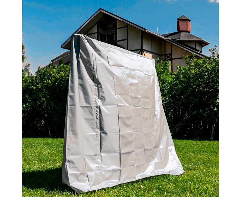 Чехол для теннисного стола бежевого цвета компакт-сборки. Предназначен для накрывания стола в сложенном виде.