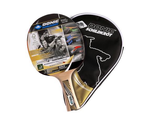 Ракетка "LEGENDS GOLD" из премиальной линейки DONIC рассчитана на тип игры Атака+. В комплекте с LEGENDS GOLD идёт чехол по форме ракетки. Для покрытия используется накладка Energy, а толщина губки 2,3 мм. Форма ручки Concave - ручка, расширяющаяся к концу. Ракетка одобрена Международной федерацией настольного тенниса ITTF.
