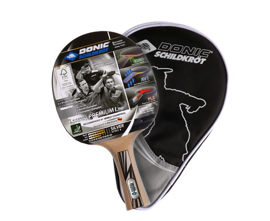 Ракетка "LEGENDS SILVER" из премиальной линейки DONIC рассчитана на тип игры Атака. В комплекте с LEGENDS SILVER идёт чехол по форме ракетки. Для покрытия используется накладка Champion, а толщина губки 2 мм. Форма ручки Concave - ручка, расширяющаяся к концу. Ракетка одобрена Международной федерацией настольного тенниса ITTF.