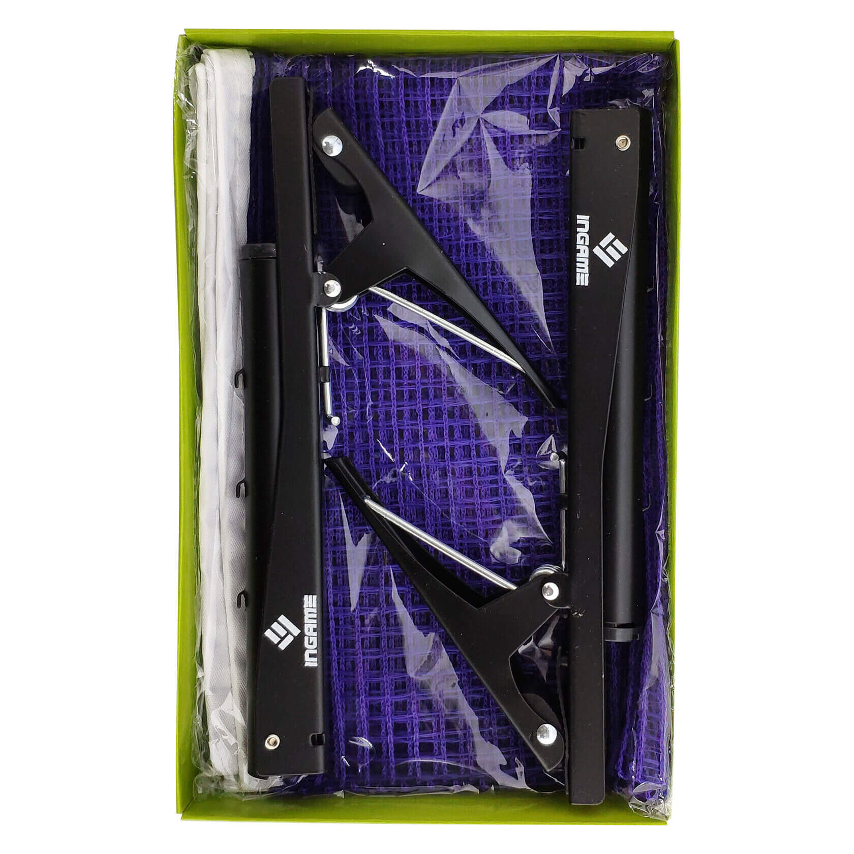 - Комплект сетки состоит из собственно сетки, подвесного шнура и опорных стоек вместе с их креплением к поверхности стола.
