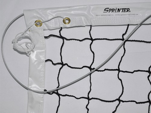 - Внизу сетки находится шнур, пропущенный через ячейки, для крепления ее к стойкам и натяжения.