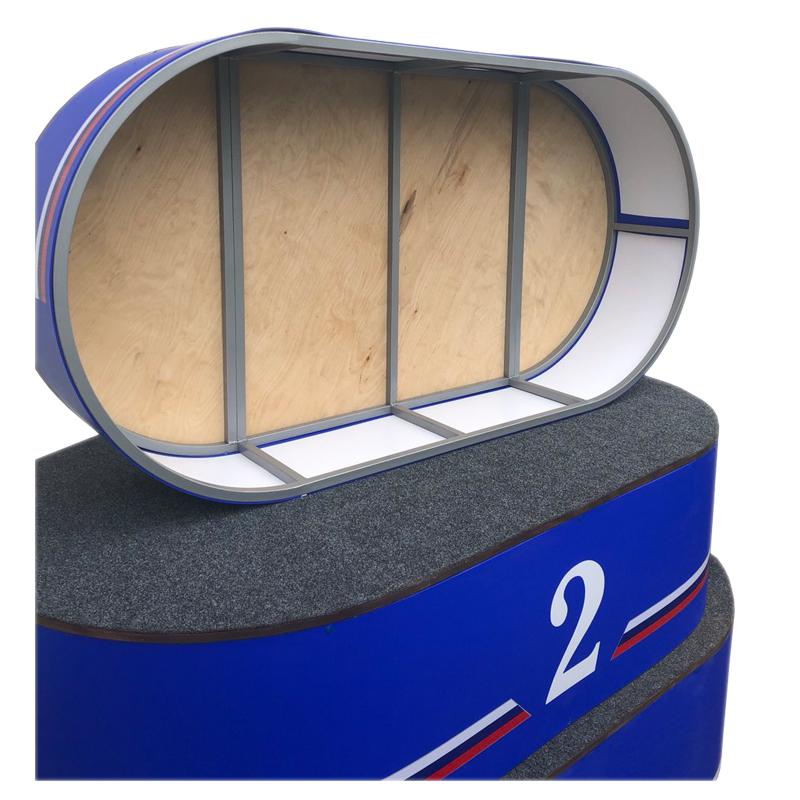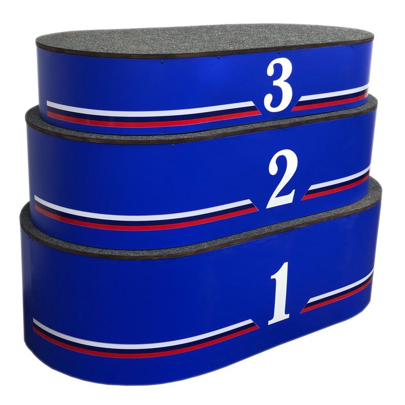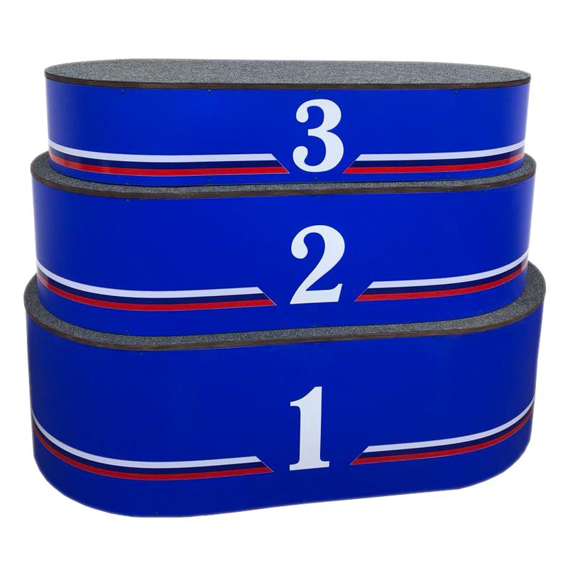 - Пьедестал для награждения состоит из трех отдельных тумб.