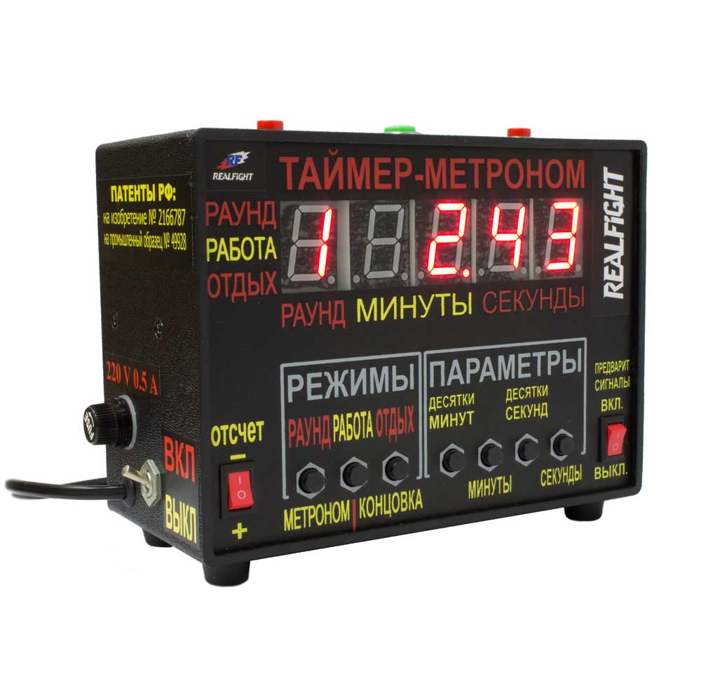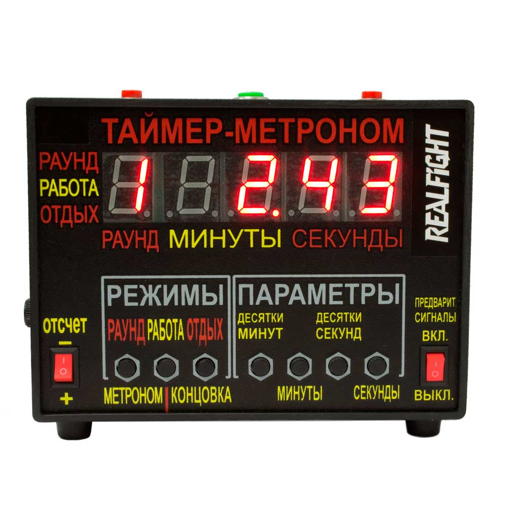Таймер-метроном предназначен для подачи звуковых сигналов и визуального контроля времени. Позволяет задавать разные интервалы времени (работа, отдых), программировать сигнал перед окончанием работы, задавать разные временные интервалы метроному, производить отсчет времени при остановке основного времени работы.