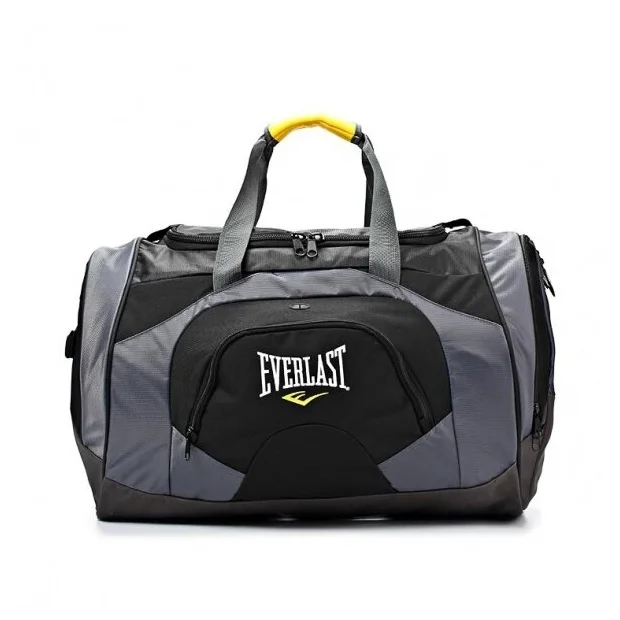 Классическая спортивная сумка от Everlast. Для хранения вещей используется: основное отделение;  два больших кармана спереди и сзади; один боковой карман со специальным отверстием, закрытым клапаном. Сумка снабжена двумя боковыми ручками, которые можно объединить с помощью специальной липучки, большим отстегивающимся ремнем по центру, а также маленькими ручками на переднем и заднем карманах.