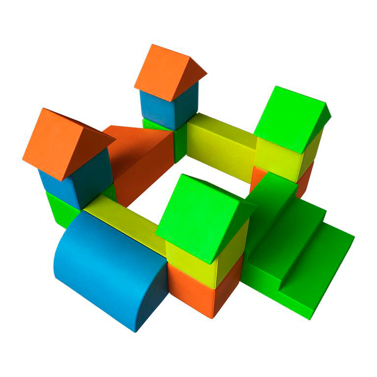 - Благодаря фантазии из предложенного набора разноцветных мягких модулей можно составить огромное количество интересных конструкций, при этом отлично тренируется воображение ребёнка.