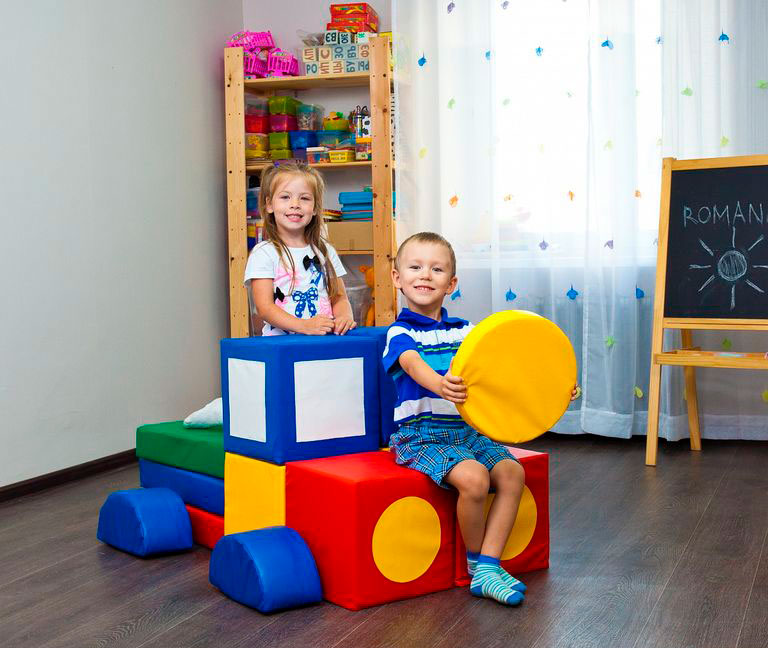 - Комплект мягких модулей - необходимая составляющая всех игровых комнат.