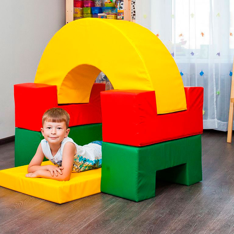 Мягкие спортивные комплексы - это набор мягких кубиков, прямоугольников, арок, трапеций, валиков, полуарок, труб и т.д. разных цветов собранных в виде тематического игрового комплекса.