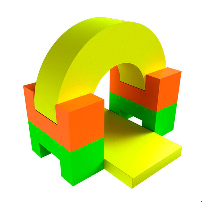- Благодаря фантазии из предложенного набора разноцветных мягких модулей можно составить огромное количество интересных конструкций, при этом отлично тренируется воображение ребёнка.