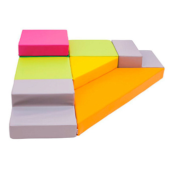 Мягкие спортивные комплексы - это набор мягких кубиков, прямоугольников, арок, трапеций, валиков, полуарок, труб и т.д. разных цветов собранных в виде тематического игрового комплекса.