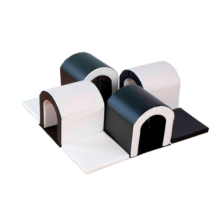 Разнообразие фигур по размерам и небольшая масса позволяет детям самостоятельно передвигать эти модули с 3-х лет. Отсутствие острых, твёрдых углов обеспечивает безопасность малышей при игре. Набор мягких модулей «Лабиринт-4» для детей выполнен из высококачественного и эластичного плотного поролона, покрытого искусственной кожей, которая легко поддаётся влажной гигиенической обработке и хорошо выдерживает нагрузку.