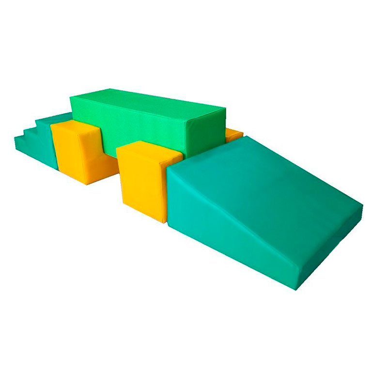 Мягкие спортивные комплексы - это набор мягких кубиков, прямоугольников, арок, трапеций, валиков, полуарок, труб и т.д. разных цветов собранных в виде тематического игрового комплекса.