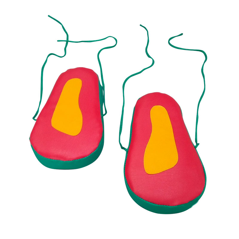 Ходунки «Лапки» - отличная игра для детей! Она используется для индивидуальных и коллективных спортивных занятий. Суть игры состоит в том, чтобы быстрее добраться до определенной цели. Ножками ребёнок вставляет на следки, а верёвочки держит в руках. Победителем становится тот, кто доберётся до цели быстрее и при этом ни разу не упадет. Игра развивает координацию движений и ловкость. Модуль изготовлен из искусственной винилис кожи ярких цветов.
