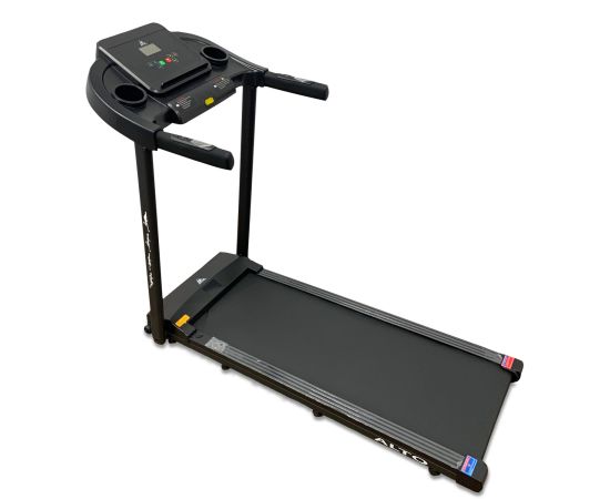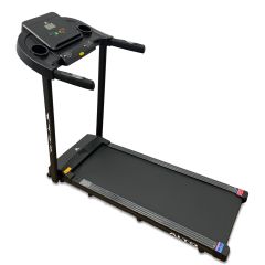 В этой модели беговой дорожки лаконично сочетается всё, что нужно для результативных и комфортных тренировок. Доступно 12 встроенных программ. На передней панели есть подставка под планшет и 2 подстаканника. Удобно держать рядом воду или спортивные напитки. На поручнях расположены кнопки регулировки скорости и датчики измерения пульса. Все данные отображаются на табло. Всего доступно 10 скоростей. Шаг изменения скорости беговой дорожки 0,1 км/ч.