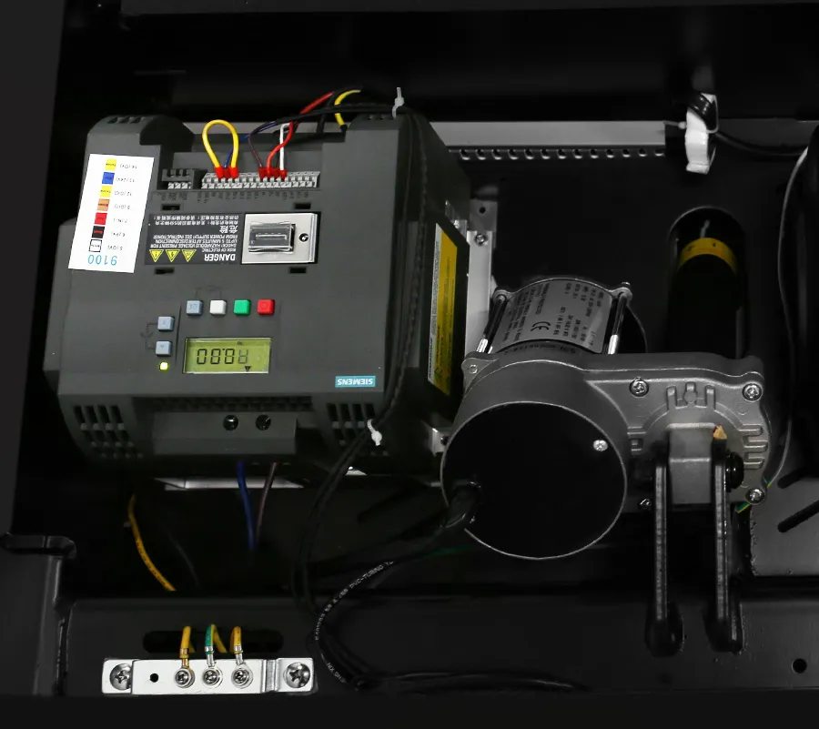 Самым главным преимуществом T1200M PRO является супермощный надежный двигатель 6 л.с. инверторного типа от немецкого бренда Siemens, который разгоняет полотно до 25 км/ч — это максимальный показатель из возможных.