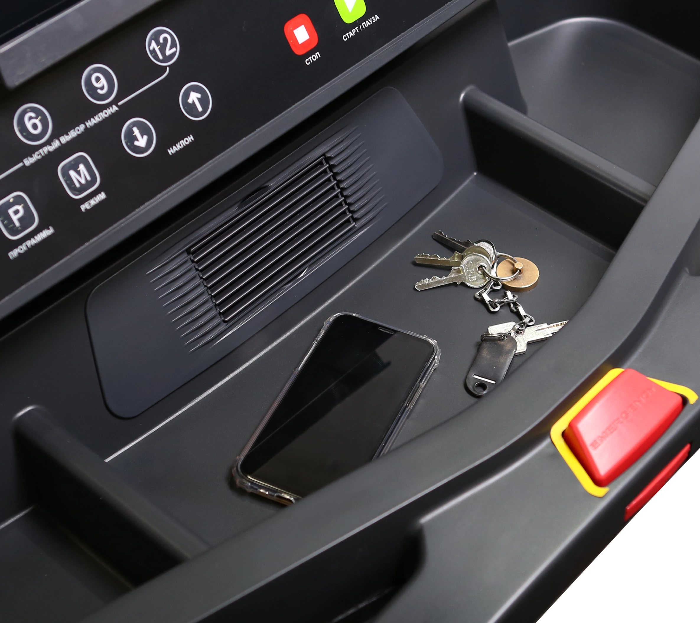 - К другим особенностям дорожки относится USB порт, предназначенный для зарядки мобильных устройств. Приятной опцией является подставка под телефон или планшет, а также держатель для бутылочки с водой.