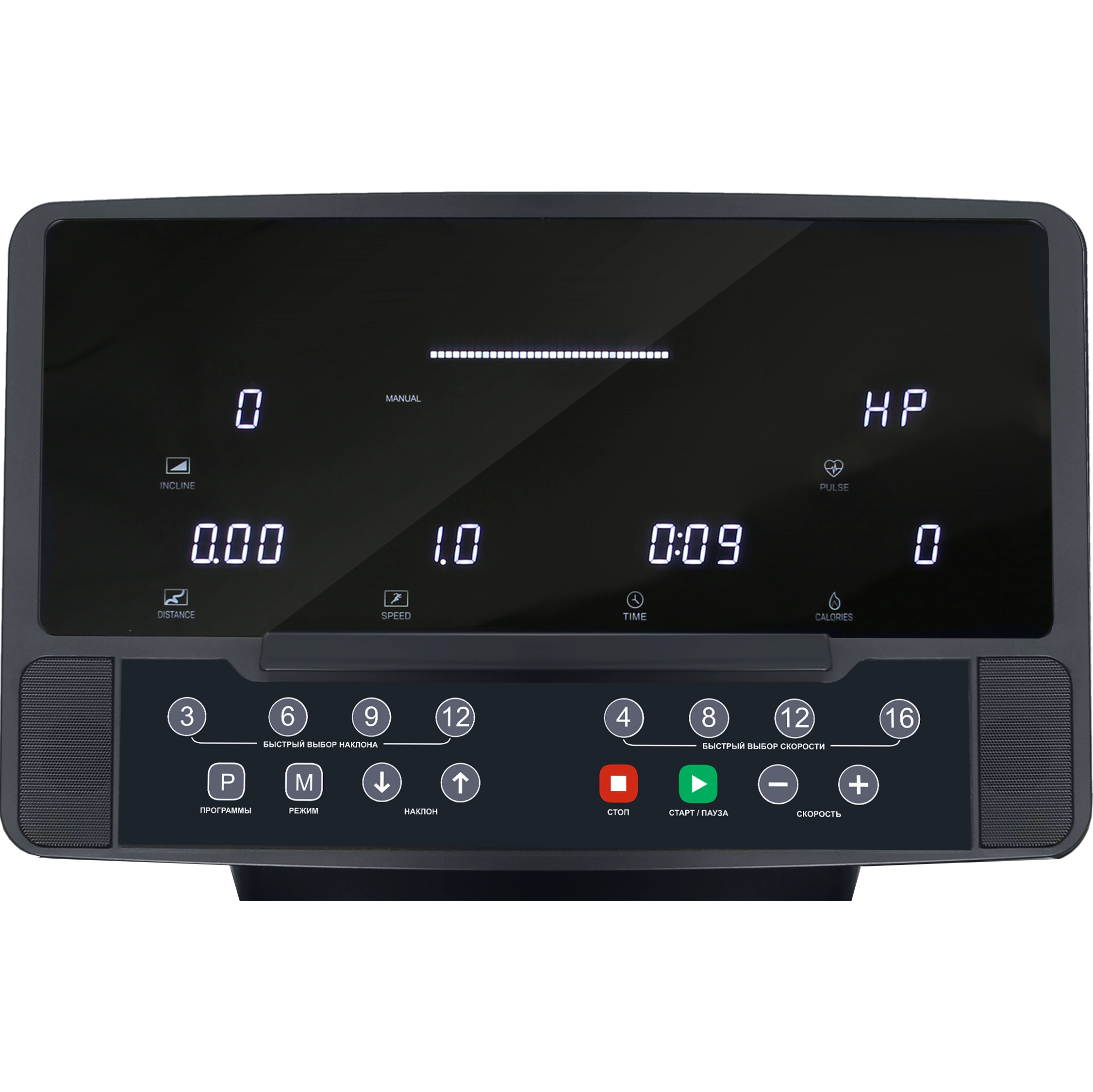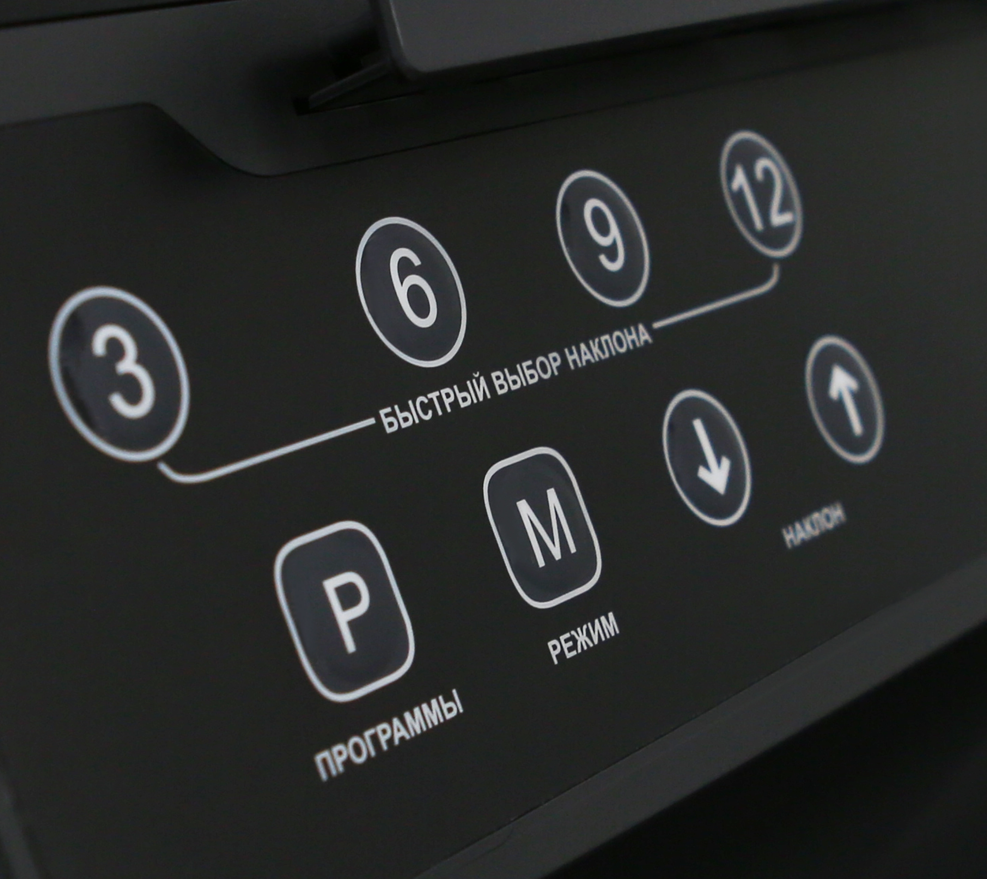 - Интуитивно понятные, информативные LED дисплеи позволяют легко и удобно управлять беговой дорожкой, как начинающим, так и подготовленным пользователям. На мониторах отображаются следующие данные: программный профиль, время, скорость, дистанция, калории, пульс, угол наклона. Все клавиши и дисплеи оснащены белой подсветкой, а надписи русифицированы.