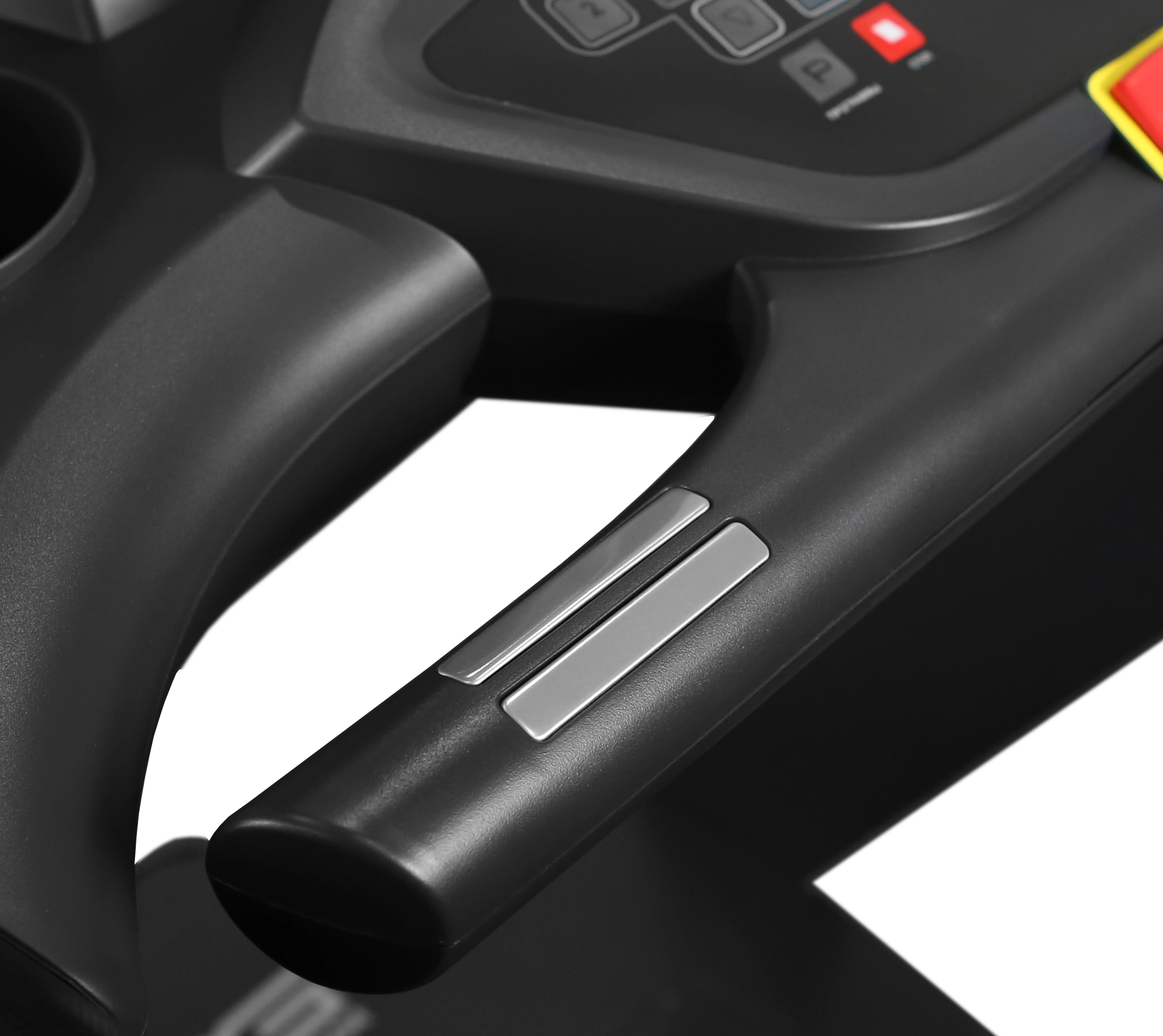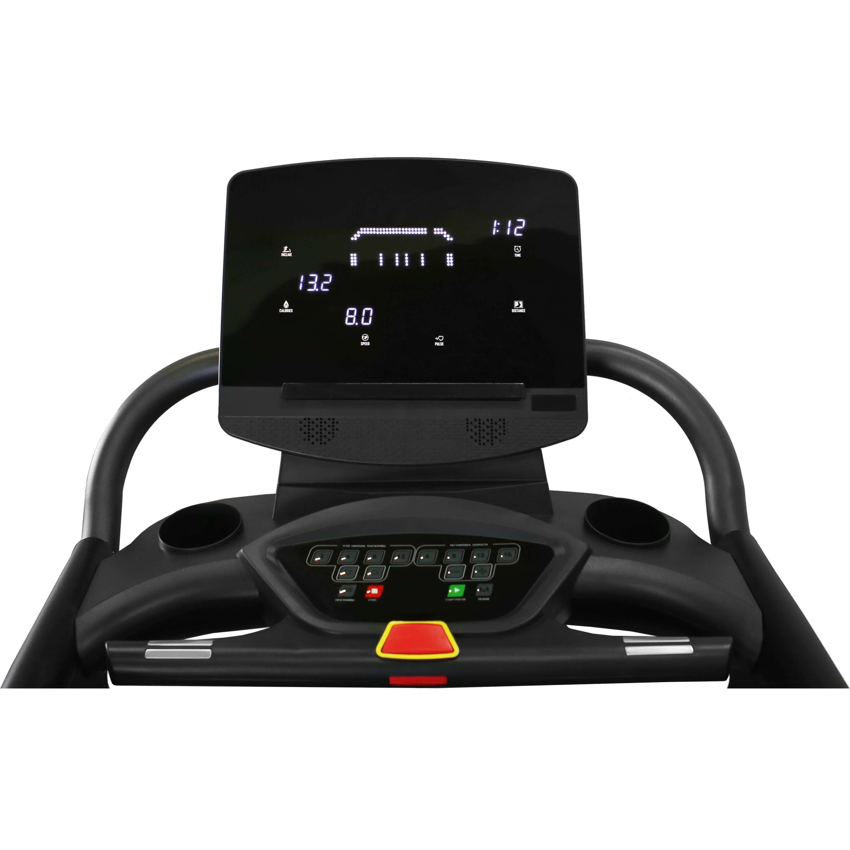 - На мониторах отображаются следующие данные: программный профиль, время, скорость, дистанция, калории, пульс, угол наклона. Все клавиши и дисплеи оснащены белой подсветкой, а надписи русифицированы.