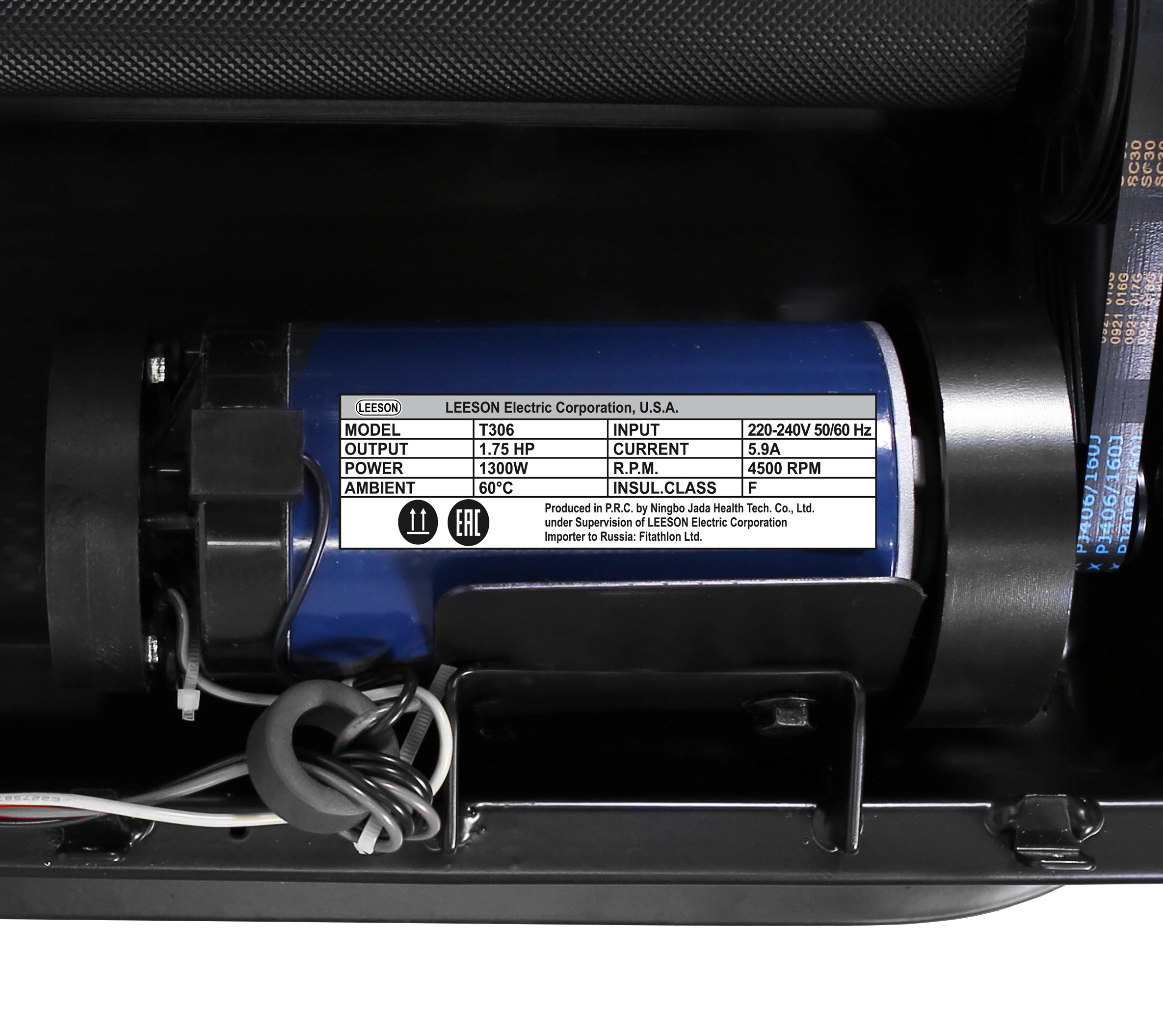 - Сердцем данной машины является мотор от американского производителя LEESON. Мощность двигателя всего 1.75 л.с., но тем не менее, это позволяет разгонять беговое полотно до 14 км/ч, что дает возможность не только ходить, но и заниматься бегом.