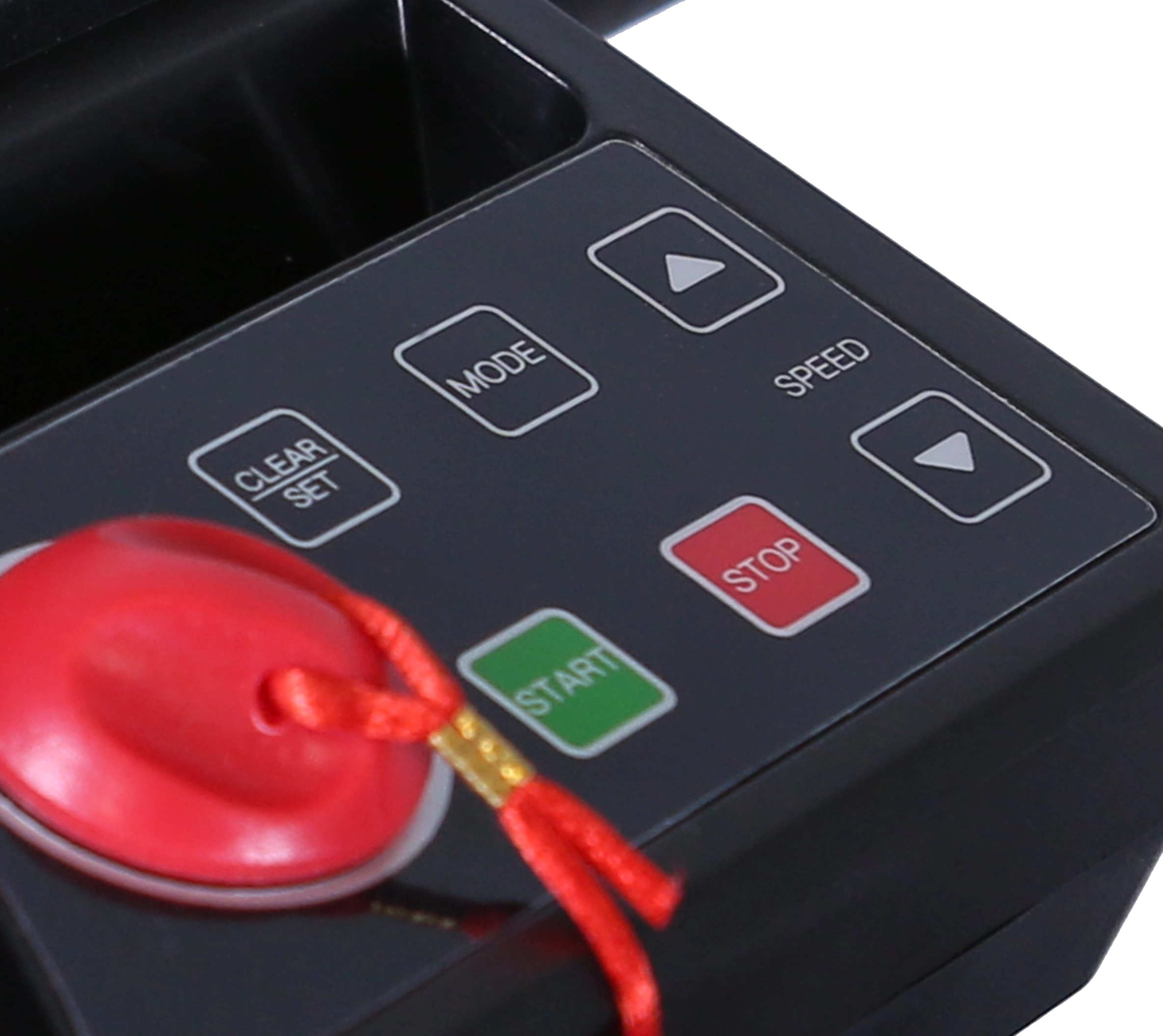 - На консоли есть удобные быстрые клавиши контроля скорости бегового полотна, старта и окончания тренировки, и 3 дополнительные программы тренировок.